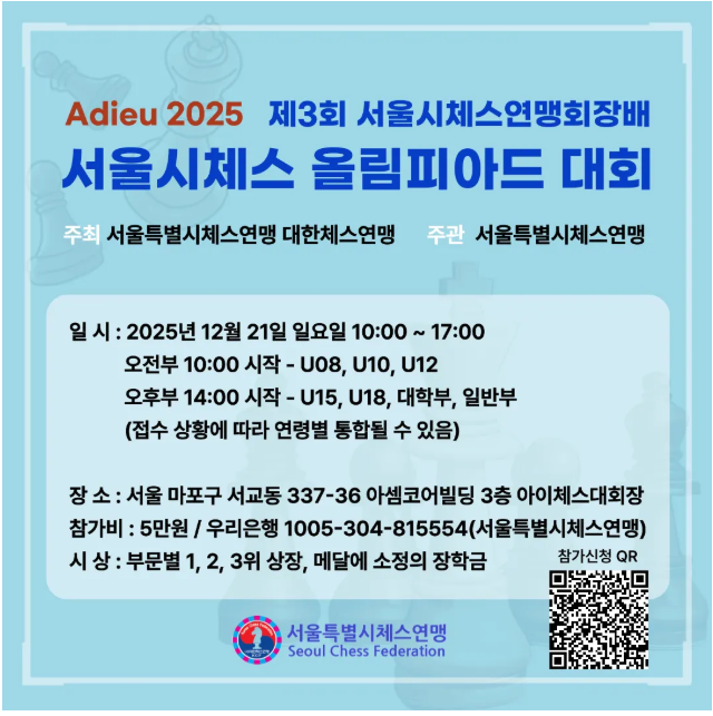 [공지] 서울 어린이 체스대회 안내 / Seoul Chess Olympiad 2025 변경사항 재공지
