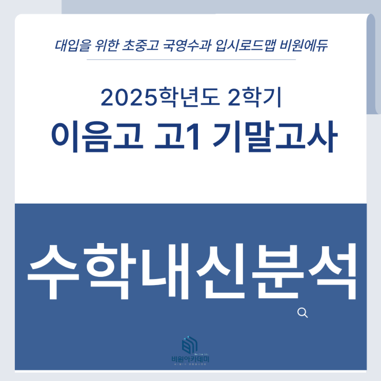 안녕하세요 검단신도시 아발론 비원교육입니다. 이음고등학교 1학년 기말고사 분석을 하겠습니다. 이번 시험범위는 명제부터 함수, 유리함수, 무리함수로 명제로인한 수학의 해석과 함수의 정확한 이해를 확인하는 단원으로 수학을 포기하는 학생들이 생기기 시작하는 구간입니다. 그래프와 경우의수를 중학교때 완벽히 이해하고 오지 않은 학생들이 힘들어 할수 있는 단원입니다. 1. 함수의 기본 문제입니다 2. 명제의 기본 정의 문제로 참 거짓이 명확한지 판별하는 문제입니다. 3. 함수(일대일 함수) 함수의 그래프를 빠르게 머리로 그려내면 실수를 하지 않는 문제입니다 함수 그래프를 차 수별로 구별해서 할 수 있도록 교육하였던 문제입니....... <img src="https://blogthumb.pstatic.net/MjAyNTEyMTlfMjQ4/MDAxNzY2MTMxNTMzNzI5.Ba9z37yIVz9YJoBsyplfqrVGTkm7yudmYdIfu5Q_9r8g.DL3w9V9JS5jwV1sRZK6NRi6142q5tykySxp8dxMFK_8g.PNG/%C1%A6%B8%F1%C0%BB_%C0%D4%B7%C2%C7%D8%C1%D6%BC%BC%BF%E4.png?type=s3" />