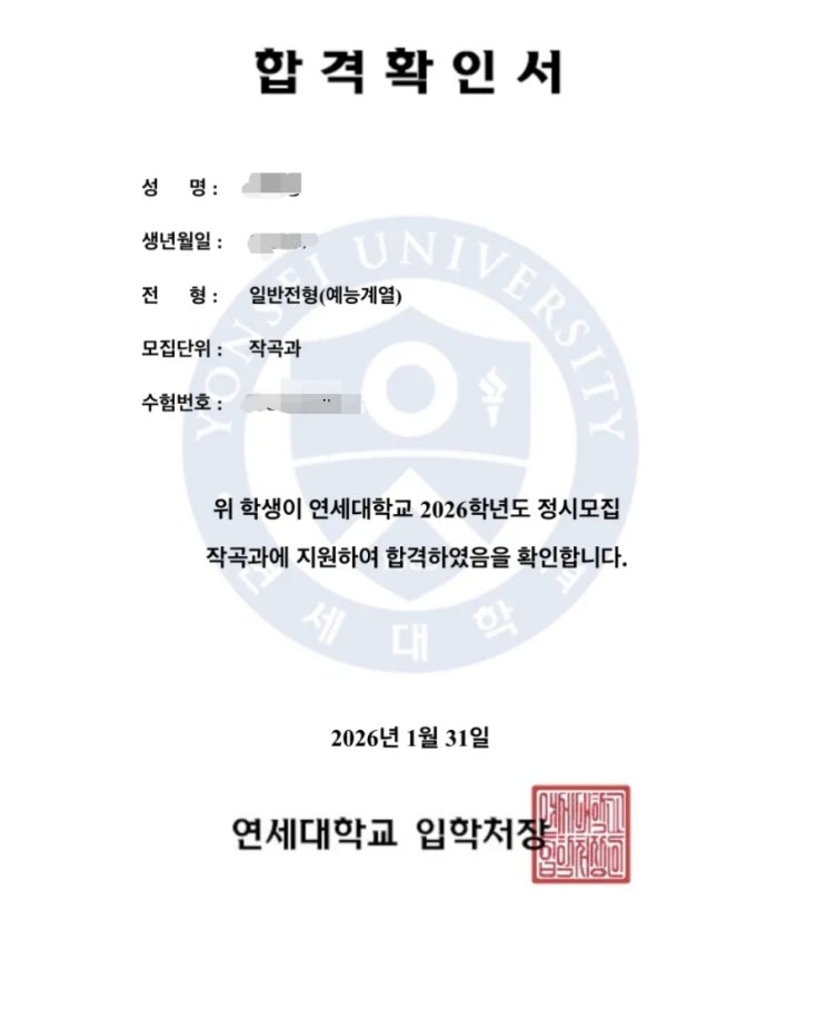 2026년 연세대작곡가합격영상[인천피아노입시학원] [아라동피아노입시학원]
