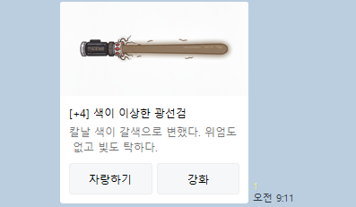 검키우기 > [+0] 빛이 흐릿한 장난감 광선검 / 4강
