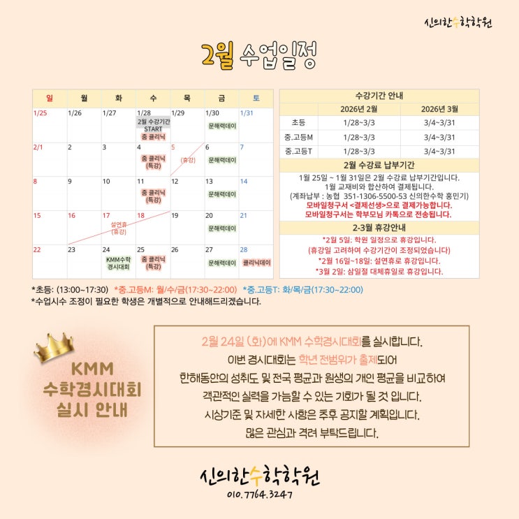 2월 수업일정 교욱문의 010 7764 3247 <img src="https://blogthumb.pstatic.net/MjAyNjAxMjlfMjI1/MDAxNzY5NjcwMTg4NTE5.nkMTgWdnwjusnVTHIKVYqfGZQ8At11oFKvkoBLubyH4g.K1K8m0AvYQWENoEJBTc5_cEQ6vgISWLiJ0LCYzYY0kwg.JPEG/26%B3%E22%BF%F9%BC%F6%BE%F7%C0%CF%C1%A42.jpg?type=s3" />
