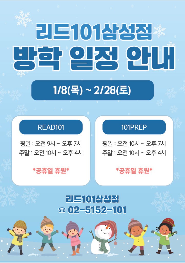 [리드101 삼성점] 2025년 겨울방학 운영 안내