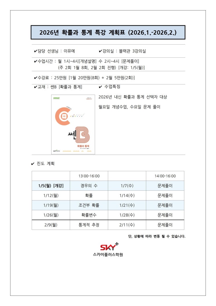 *특강*[예비고3/수학/이유예T] 확률과통계 특강