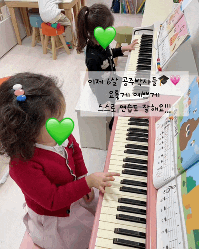 올해로 6살이 된 두 공주박사의 연습시간이에요 선생님과 함께 많이많이 연습하고 나서는 스스로도 연습하는 시간을 가져보아요! ✅물론 한 발자국만 떨어져서 지켜봐주는 선생님이 있지요 피아노의 건반과 친해지고 타건을 하면서 소근육을 사용하는 습관을 쌓아갑니다 처음에는 한 손가락씩 사용한다는 것이 익숙치 않아 힘들지만 서서히 손끝힘이 생기고 글자를 쓰거나 색칠을 할 때 연필을 쥐는 힘도 성장한 것을 볼 수 있어요! 저학년 때부터 피아노학원에 오던 두 형아박사들은 어느덧 6학년이 되었고 피아노로 노는 멋쟁이가 되었어요⭐️ ✅스마트폰, 게임하는 시간을 피아노학원에서 보내도록 해주세요! 사춘기 시절 아이들....... <img src="https://blogthumb.pstatic.net/MjAyNjAyMDhfMyAg/MDAxNzcwNTE4NzMwMDUz.O72vjg0l5w-Fy3M6253qrvBCY09P1HrDitcblshAUY0g.Tz4ADScgSVpTp_4WOuBHaOLNEZPtch6XrDGIgtXf7lsg.GIF/2820308004.gif?type=s3" />