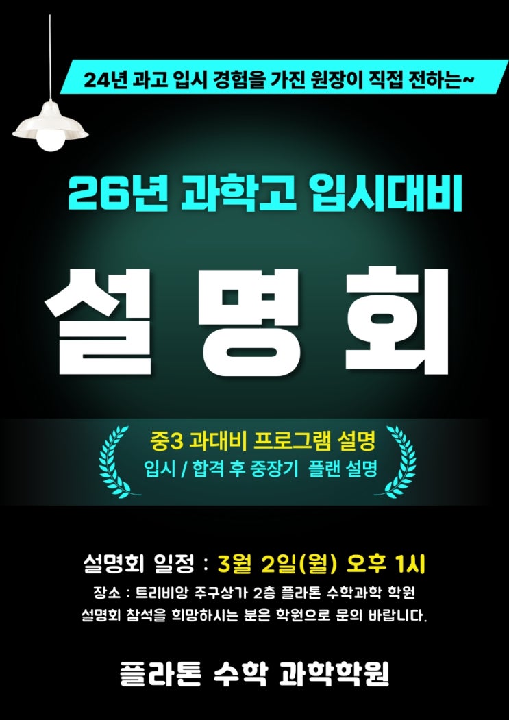 초등학교 저학년 1~3학년 : 스팀과학과 실험을 통해 직접적으로, 간접적으로 과학을 이해 초등1-3학년 스팀과학논술 지구과학 생물 에너지 물질에 관한 이야기를 아이들과 함께 고민하고 알아갑니다. 초등 4-5학년 자체교재를 사용하여 중등 물리 화학 지구과학 생물 을 집중 수업합니다. 기본이 탄탄한 아이는 면접을 볼 때 자신감이 넘쳐요. 우리학원의 영재원보내는 법이였습니다. <img src="https://blogthumb.pstatic.net/MjAyNjAyMTJfNiAg/MDAxNzcwODgzMTk2OTE4.d1-opn6oUqBgnaGwmdEEJjj_p5Rgcl6Bn_JgYjoYlxAg.x32ACd3iyB0sKrqbFkLHzDqNRCC_Gi8ooKyWh4UkGlMg.PNG/%BD%BA%C5%A9%B8%B0%BC%A6_2026-02-12_143842.png?type=s3" />