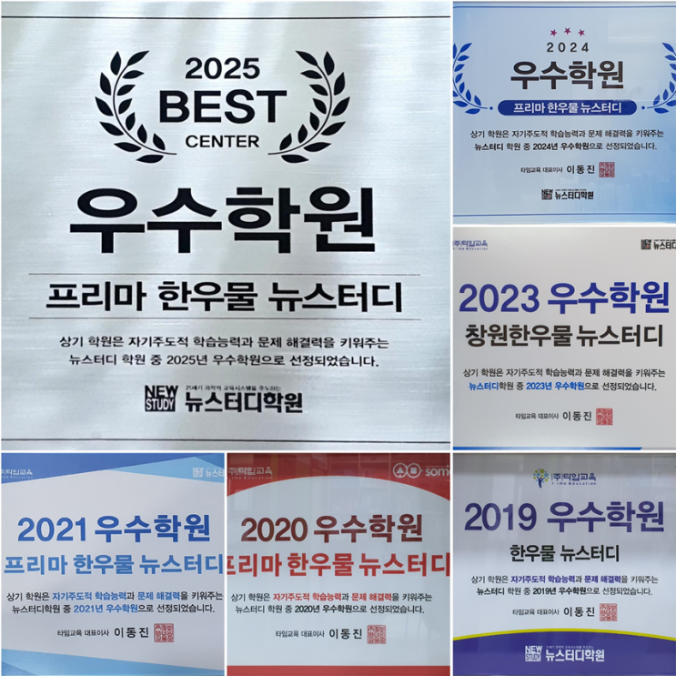 안녕하세요^^ 마산 수학·과학 전문 한우물뉴스터디학원입니다. 저희 학원은 학생들이 스스로 공부하는 힘과 문제를 해결하는 능력을 기르는 것을 교육의 가장 중요한 방향으로 삼아 꾸준히 지도해왔습니다. 이러한 교육 철학과 수업의 성과를 인정받아, 한우물은 매년 타임교육에서 선정하는 우수학원으로 2019년부터 2025년까지 꾸준히 이름을 올리고 있습니다. 우수학원 선정 히스토리 연속적인 수상은 단순한 결과 이상의 의미를 갖습니다. 학생들의 성실한 노력과 학부모님들의 든든한 신뢰, 그리고 이를 함께 만들어온 선생님들의 헌신이 모여 지금의 한우물뉴스터디학원을 만들었습니다. 한우물뉴스터디학원의 수업 방식 한우물뉴스터디학....... <img src="https://blogthumb.pstatic.net/MjAyNjAyMTFfNjYg/MDAxNzcwNzQ1MjQ4MTgx.blUBVyLKXgkRnYq5FdDIWdHsTiOrg2ffXX2uUnUWYhwg.uv_QzZIqpp95nQFo99_NC4IQeS_ZdGRMrAmJfYG_E6Eg.PNG/image.png?type=s3" />