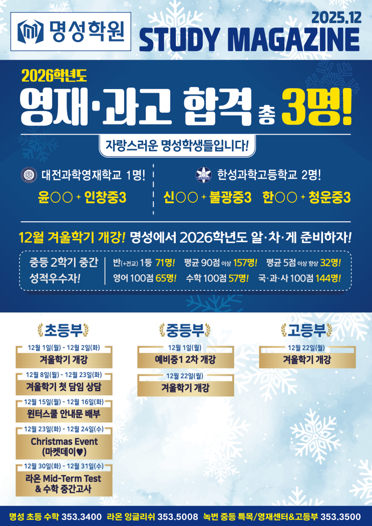 명성학원 12월 일정! #학원 #은평구 #은평구학원 #녹번 #중등 #고등 #전교 #내신 #입시 #입시준비 #과학고 #외고 #국제고 #자사고 #대비 #특강 #수업 #공부 <img src="https://blogthumb.pstatic.net/MjAyNTEyMDRfMTEz/MDAxNzY0ODI5NTY0Nzgx.q0Bc7OqYunSThUPRZWJpsfv2bb6S_C18XxlM7cvoZKwg._DDh6x5XC35-ZCdwNGUsHufVImzDQxcUhTB0aA6GlcMg.PNG/%BD%BA%C5%CD%B5%F0%B8%C5%B0%C5%C1%F8_12%BF%F9%C8%A3_25.11.3.png?type=s3" />