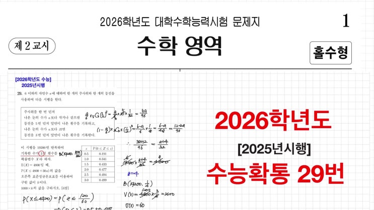 전형적인 이항분포와 독립시행이 결합된 문제입니다. 기초만 잘되어있으면 충분히 풀수 있는 문제였습니다 https://youtu.be/2urFBkA2zzw <img src="https://phinf.pstatic.net/image.nmv/blog_2025_12_04_1686/HlwlnmCzTd_01.jpg?type=f480x480" />