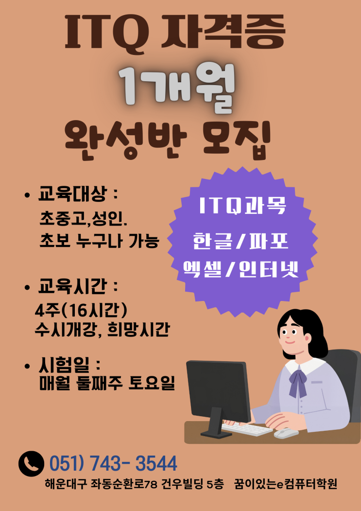 2026년 ITQ자격증시험 일정 및 ITQ자격증 한달완성반 모집안내