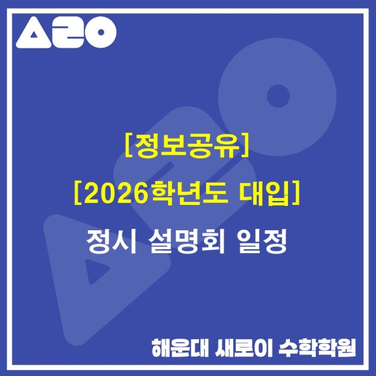 [정보공유] [2026학년도 대입] 정시 설명회 일정 [해운대 좌동 새로이 수학학원]
