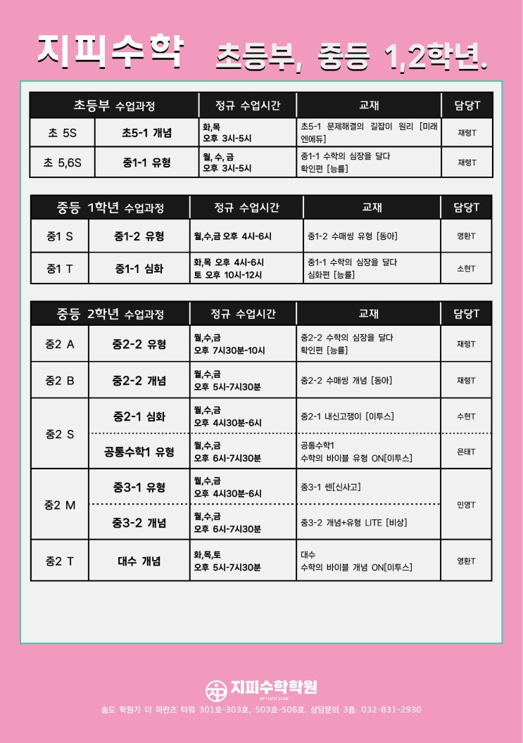 [송도 초등 중등 수학]지피수학 초등,중등부 3월 교육 프로그램 안내
