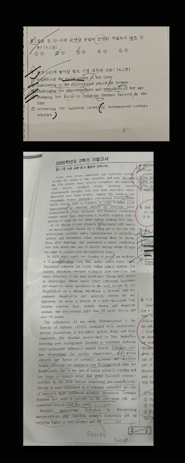 세원고등학교2학년 2학기 기말영어총평 난이도 상 세원고등학교2학년 영어총평 객관식3번-난이도 상 1번 보편적으로 받아들여지는 데이터 4번 겉으로 객관적 데이터 신중한 조사 없이는 빈칸은 오해를 준다! 빈칸의미는 본문에서 통계자료의 특징을찾는것 통계자료는 1.진실을 나타내는것 같은2.선택적으로 해석된 데이터3.독립적 실험실,공적인 증거4.많은 샘플x,현실왜곡5.결정적으로 편향된방식으로 측정,신뢰도 감소 따라서 겉으로만 객관적데이터라고 판단 정답4번 출제방식이 모의고사 풀이시 2개 선지비교처럼 난이도가 높아진 판단 준거를 활용함,잘찍은 학생들제외 거의 틀렸을것으로 판단됨 객관식6번 난이도 상 1번 선지defy(저항),em....... <img src="https://blogthumb.pstatic.net/MjAyNTEyMTNfMTkw/MDAxNzY1NjA0ODE4OTky.RakxGnFPWPHlIF13ksurcL2srVH8jJ9gS4c0_ZnWBTQg.U56ooRjTBwVga-eRaJ6p9cW9fxXwXO4V8F5I9qgg3vAg.JPEG/1765604498983.jpg?type=s3" />