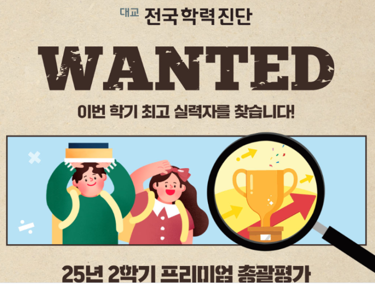 어느덧 2학기가 마무리 단계가 되고 새 학년을 준비해야 합니다. 새 학년의 학습은 이전 학년에서 배운 내용이 자연스럽게 이어지는 경우가 많아요. 그래서 지금, 지난 학기의 학습 성취도를 점검하는 시간이 꼭 필요합니다. 매 년 12월이 시작되면 대교의 총괄평가가 시작됩니다. 25년 총괄평가에 대해 안내해 드립니다. 대교 프리미엄 총괄평가 왜 총괄평가가 필요한가요? 새 학년 수업은 이전 학년에서 배운 내용을 바탕으로 더 깊고 넓게 확장됩니다. 그래서 기초가 제대로 잡혀 있지 않으면 다음 학습이 어려워질 수 있어요. 부족한 부분을 빨리 발견하면 겨울방학 동안 효율적으로 보완할 수 있고, 아이의 학습 상태를 객관적인 데이터로 확....... <img src="https://blogthumb.pstatic.net/MjAyNTEyMTVfMTI0/MDAxNzY1NzY3NzI4ODE4.oZ-LjWRKlhIsKIZTqphVtOsnwjmCg9GzfKabdr-4CFcg.WZb5MrH0PNCcnEYS3pbHlE6Ex4POvfaeLDL0ohLwMBUg.PNG/%3F%99%94%EB%A9%3F_%EC%BA%A1%EC%B2%98_2025-12-15_120140.png?type=s3" />