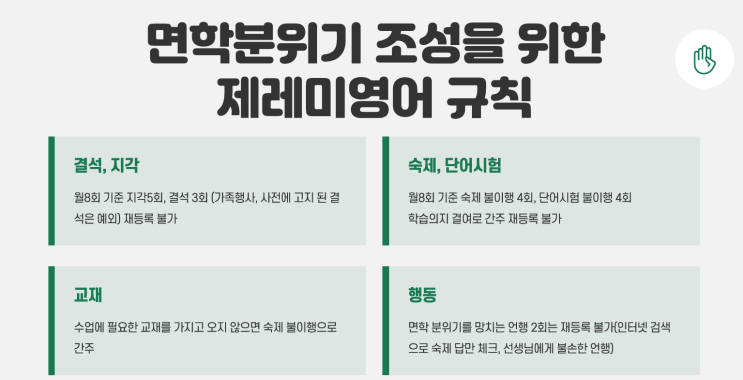 청라영어학원: 제레미 영어 교실 학생들의 규칙