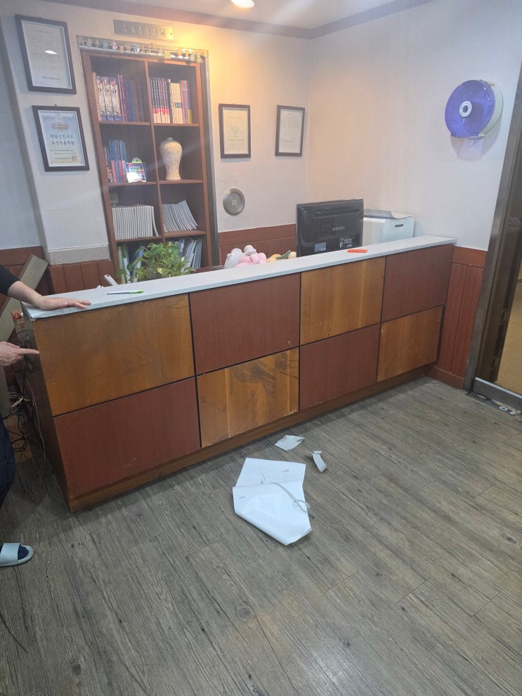 다음주에 설명회도 있고, 봄을 맞이해 학원 분위기를 새롭게 바꾸고 싶다는 생각이 들어, 학원 로비 인테리어를 직접 해보기로 했습니다. 과연 할 수 있을까 의문이 들었지만 "하면 되더라"는 믿음으로 일단 시트지를 주문 했습니다. 막상 시트지가 지난주에 도착했는데 한번도 해보지 않았던 작업이라 엄두가 안나더군요. 일단 도전!! 기존 로비는 시간이 지나면서 다소 낡은 느낌이 있었고, 처음 방문하는 학부모님과 학생들에게 조금은 아쉬운 첫인상을 줄 수 있는 상태였습니다. 작업 과정은 생각보다 간단하지 않았습니다. 낡은 의자,쓰레기통도 치우고 일단 바닥부터 깨끗히 청소하고... 기존 마감 위에 시트지를 부착해야 했기....... <img src="https://blogthumb.pstatic.net/MjAyNjAzMjNfNTEg/MDAxNzc0MjMzMzkyMzM3.3h1DDRge4UyTt_i9koqxO8ANkGVqkeQqhy3hHMcJGaog.UVr4ifcMbwb2W5SasF1ogvSaZrd4HtnaFHiLaVlySZIg.JPEG/%BD%C3%C6%AE%C1%F6%C0%DB%BE%F7%C0%FC2.jpg?type=s3" />