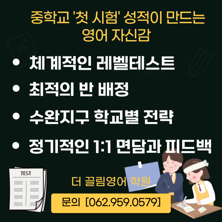 [수완지구 영어학원] 첫 시험 성적이 만드는'영어 자신감' 수완지구 중등부