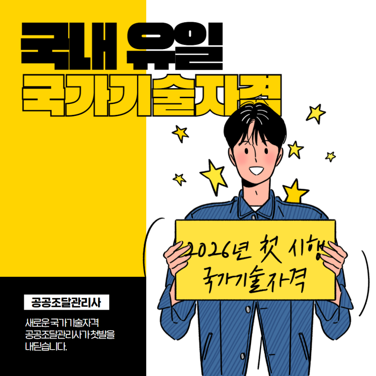 최근 자격증 시장에서 새롭게 주목받는 이름이 있는데요. 바로 공공조달관리사입니다. 새로운 국가기술자격으로, 공공기관과 기업을 연결하는 조달 실무의 전문성을 공식적으로 인정받을 수 있는 자격이라는 점에서 관심이 커지고 있습니다. 공공조달관리사란? 공공기관의 조달 업무를 지원·관리하는 직무를 수행하는 전문가를 뜻하며 공공조달 제도·계획·계약관리 등 전 과정을 실무적으로 수행할 수 있는 역량을 갖춘 인력 쉽게 말하면 공공조달관리사는 국가기관, 지방자치단체, 공공기관이 필요한 물품·용역·공사 등을 적절한 절차에 따라 구매하고 계약하도록 돕는 전문인력입니다. 단순히 “물건을 사는 사람”이 아니라 조달계획 수립부터....... <img src="https://blogthumb.pstatic.net/MjAyNjAzMTdfNjMg/MDAxNzczNzE0MjkzMzE1.hLX_zGicvSF_o33uCMBfn0Qcs4J9vjorj5F9_6ywsccg.7xmm7nnaYDeOmFS1xUPVZo4qAE4-4V5RxQ1MTpndPSEg.PNG/%C1%A6%B8%F1%C0%BB_%C0%D4%B7%C2%C7%CF%BC%BC%BF%E4_2.png?type=s3" />