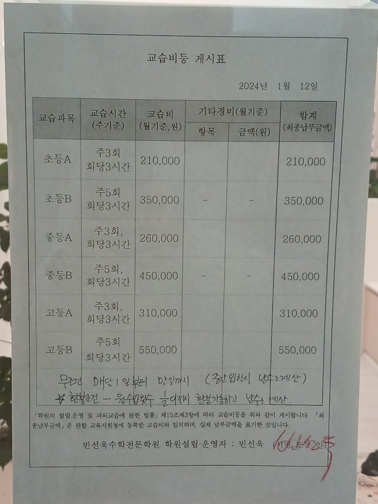 교습비 안내