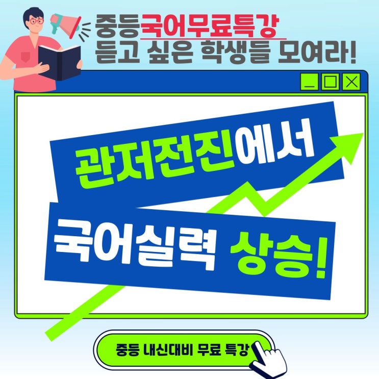 성적을 뒤집을 마지막 기회, 지금 전진하세요! 다가오는 2학기 기말고사는 우리 아이들이 중학교 국어 실력을 완성하고 자신감을 높일 수 있는 마지막 관문입니다. 전진학원 관저원이 중학교 1, 2학년 학생들을 위해 특별한 무료 특강 3회를 준비했습니다! 왜 전진학원 국어 특강을 선택해야 할까요? > 단 3회로 끝내는 완벽 대비: 가장 효율적인 학습으로 2학기 기말고사를 마무리합니다. > 고등 국어의 밑거름: 단순히 문제풀이 기술을 넘어, 고등학교 학습의 기반이 될 핵심 개념 정리에 집중합니다. > 적중률 높은 강의: 출제 경향 분석을 통한 출제 예상 문제 풀이로 실전 감각을 극대화합니다. 특강으로 얻게 될 결과! ....... <img src="https://blogthumb.pstatic.net/MjAyNTEyMDZfNiAg/MDAxNzY1MDAzMDMxNzUx.PZiSj1NqJUgYJeda4VBhFBRF9EVrLCixenfsB_u9Z6Eg.ClciRrqkwJvQxFmBp3cUpF84D6_HXUGqiUYD0diIJOcg.JPEG/%C0%FC%C1%F8%C7%D0%BF%F8%28%BC%F6%C7%D0_%B1%B9%BE%EE_%B0%FA%C7%D0%29_%BB%E7%C1%F8_20251119_1.jpg?type=s3" />