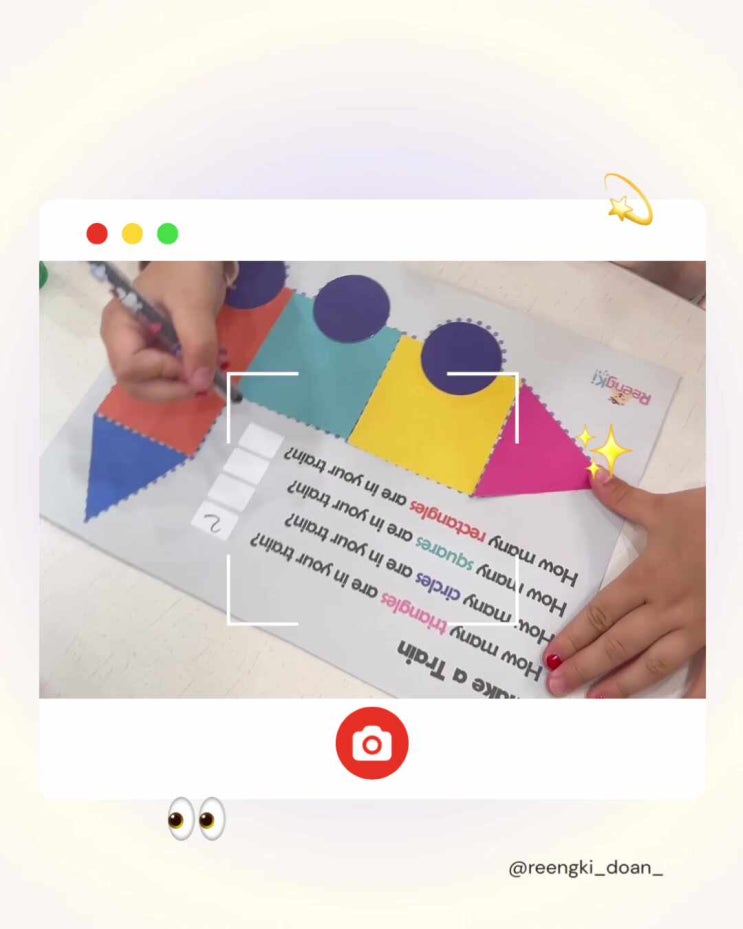 안녕하세요. 도안링키영어입니다 ^^ 11월 한 달 동안 우리 아이들은 신나는 도형 이야기 속으로 풍덩 빠져보았어요! Look at the (shape)! • Look at the circle! • Look at the triangle! • ⬟ Look at the pentagon! • ▭ Look at the rectangle! • ⬡ Look at the hexagon! • Look at the square! “It’s a cracker!” 아이들이 직접 보고, 말하고, 맛보며 즐거운 경험 속에서 영어를 자연스럽게 익히는 모습을 볼 수 있었답니다 이번 달 대화문 패턴인 “Pass me (shape), please.” ✋ / “Here it is.” 도 친구에게 도형을 건네며 castle 만들기 활동으로 자연스럽게 연습했어요 아이들은....... <img src="https://phinf.pstatic.net/image.nmv/blog_2025_11_28_2234/CEiaThohMo_03.jpg?type=f480x480" />