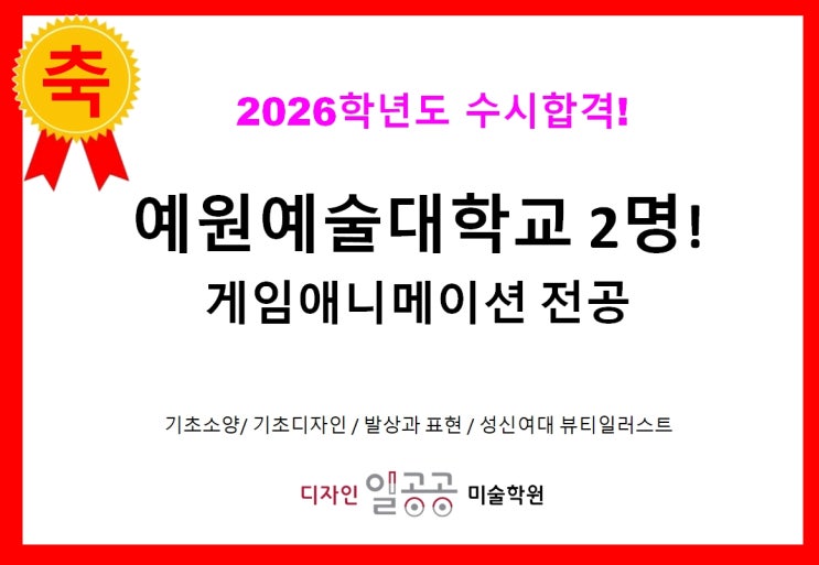 2026학년도 수시합격을 축하합니다!예원예술대학교_게임애니메이션과 2명 수시합격!_중랑구디자인일공공미술학원