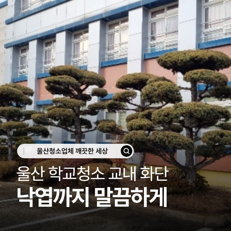 안녕하세요 울산청소업체 깨끗한 세상입니다. 목차 1.사전 점검 2.한 장의 낙엽도 놓치지 않기 3.청소가 끝난 뒤 가을이 지나고 겨울이 다가올 때쯤이면 학교 화단은 금세 낙엽과 먼지로 뒤덮이곤 합니다. 이번에 저희가 방문한 학교 역시 학생들이 지나다니는 길목마다 낙엽이 수북하게 쌓여 있었는데요 바람이 조금만 불어도 낙엽이 흩날리고 비라도 내리는 날이면 미끄러짐 위험까지 있어 빠른 시일 내 정리가 필요한 현장이었습니다. 사전 점검 학교에 도착했을 때 가장 눈에 띈 건 화단뿐 아니라 통로에도 쌓여 있던 낙엽의 양이었습니다. 화단 사이로는 마른 가지들이 얽혀 있었고 흙먼지가 뿌옇게 올라와 학생들이 지나다니기에 불편....... <img src="https://blogthumb.pstatic.net/MjAyNTEyMDVfMjEg/MDAxNzY0OTEzNzY2ODI0.NaIT4KGDR02reqKAOPEWaE6aOH0ujYlUNS9joC-N8OAg.MI2L4a2vrOW8tr7GeL679Rcsu98Ng0OUmtNhO_mgDJEg.PNG/1.png?type=s3" />