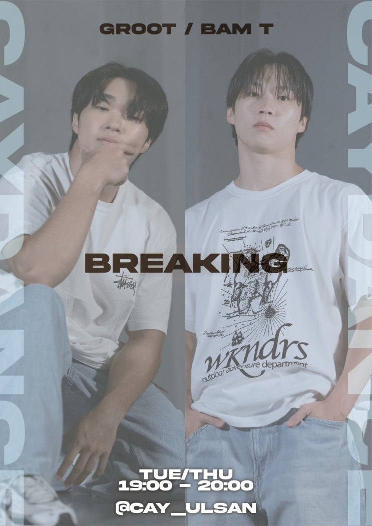 BREAKING '브레이킹' 이란? 브레이킹(비보잉)은 간단한 기본 스텝과 동작들뿐만 아니라 역동적인 움직임과 화려한 기술들이 특징인 춤 입니다. 브레이킹&브레이킹 전문 클래스 선생님 BAM&GROOT&KINGSO T 2024년 파리 올림픽 브레이킹 국가대표 코치 KINGSO 2021 브레이킹 청소년 국가대표 GROOT 2명의 비보이들과 함께 더욱 탄탄해진 울산 카이댄스학원 브레이킹 클래스 입니다! #울산댄스학원 #댄스학원 #카이댄스학원 #울산연습실 #댄스연습실 #브레이킹 #직장인취미 #댄스 #댄스초보 #전문반 #입시반 #공연 #입시전문반 #댄스전문 #댄스취미 #입시전문반 #전문반 #입시반 #대학교 <img src="https://blogthumb.pstatic.net/MjAyNjAyMTFfODEg/MDAxNzcwNzg5MzU4Mzkw.ZY14YLUYcG45-rjkHogI0FV6t0QLdb01PYyaq1jsw9Ig.nMIFt1VNss5W2PNmXiwmPrFwycuFJG-uz6s9n2hK9Wcg.JPEG/%BA%EA%B7%B9%C0%CC%C5%B7_-_GrootBam.jpg?type=s3" />