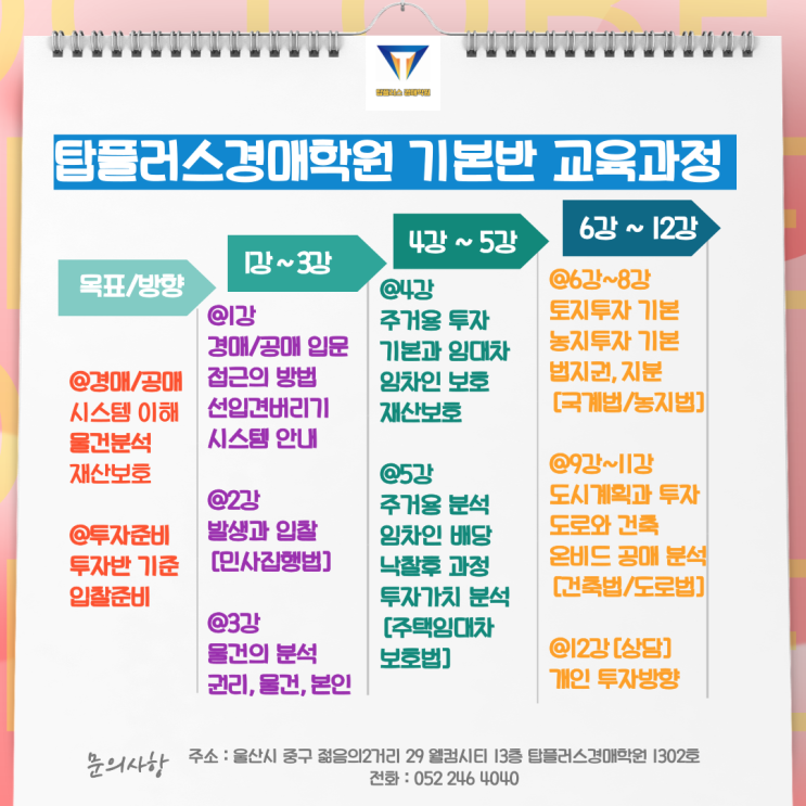 2026년 탑플러스경매학원 경린이 기초반 기본반 커리큘럼 울산경매학원 성남동경매학원