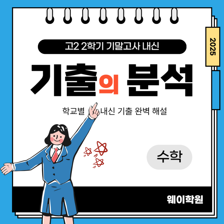 안녕하세요 WAY 학원입니다. 오늘은 울산 울주군 천상고등학교 2학년 2학기 기말고사를 분석해 보겠습니다. 시작해 볼까요~!! 첫 번째 문제 고차방정식의 실근의 개수를 이용하여 미지수를 구하는 문제가 출제되었습니다. 첫 번째 문제 풀이 고차방정식의 실근의 개수를 구하기 위해 4차방정식을 4차 함수의 그래프로 표현하여 교점을 찾는 방법을 이용하여 풀어 보았습니다. 두 번째 문제 부등식을 만족하는 삼차함수의 범위를 구하는 문제가 출제되었습니다. 두 번째 문제 풀이 주어진 부등식의 그래프를 그려서 부등식에 맞는 x의 범위를 구하였습니다. 세 번째 문제 주어진 조건에 맞는 함수의 종류를 찾는 문제가 출제되었습니다. 세 번째 문....... <img src="https://blogthumb.pstatic.net/MjAyNTEyMDZfMjgy/MDAxNzY1MDEyNDI0OTQ1.MUgCHb1FE3s6aQUMsosAT6lSjZ_ccHkdxb1lRhSAJWUg.1rDGHYvKfmRra6AbKeSrE8moSSfmsDlAGBcWMKhNZ2Eg.PNG/%C1%A6%B8%F1%C0%BB_%C0%D4%B7%C2%C7%D8%C1%D6%BC%BC%BF%E4_-001_%281%29.png?type=s3" />