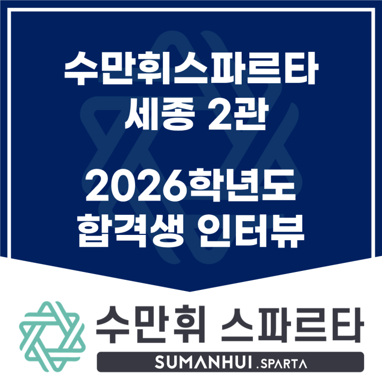 안녕하세요 세종 독학재수, 세종 윈터스쿨 수만휘 스파르타 세종2관입니다. 세종2관의 자랑스러운 합격생 인터뷰소식을 전해드리려고 합니다. 이화여자대학교 과학교육과에 합격한 정*진 학생의 서면 인터뷰 내용입니다. 1년 가까이 수만휘에서 생활하면서 철저하게 시간관리를 잘했고 수만휘 규정에서 벗어나지 않게 노력하고 묵묵하고 차분하게 수험생활을 완주했습니다. 앞으로의 더 빛나는 미래를 응원하고 기대하겠습니다. 현재 저희 수만휘 스파르타 세종2관은 N수 남 1좌석, 여 1좌석 남아 있습니다. 등록문의 : 044-868-0196(문자수신가능) <img src="https://blogthumb.pstatic.net/MjAyNjAxMjhfNzgg/MDAxNzY5NTc2MTE1NDQ2.-whnoZsC333mDnGljfBr5M549m3xQpX4-rBBbhBTLVsg.dyPuHPyTQn5vPNkZm_ip_VilECKsBNTnTZl5y_H54IYg.PNG/%BA%ED%B7%CE%B1%D7_%BD%E6%B3%D7%C0%CF%28%C7%D5%B0%DD%BB%FD_%C0%CE%C5%CD%BA%E4%29.png?type=s3" />