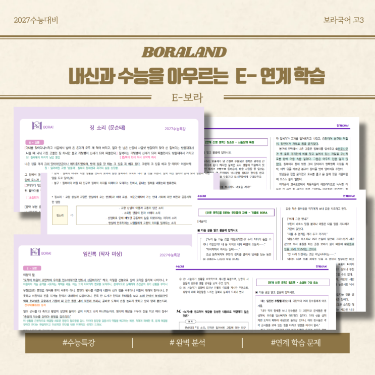 #보라'S 연계 심화 문제집 [E-보라] 수능특강 분석 & 작품 연계 + 핵심 포인트 연계 문제 #평가원의 시선 학습 교재 [깊게 보라] #수업과 긴밀하게 연계된 자기주도 학습 과제 [월간 보라] # '연습을 실전같이, 실전을 연습같이' 수능과 같은 시간에 지속되는 오전 [심화 모의고사] & 개인 성적표 배부 노력하고 발전하는 [보라국어] 2027년도 수능 대비도, 꾸준히, 열심히 진행하고 있습니다. <img src="https://blogthumb.pstatic.net/MjAyNjAyMTFfMTA0/MDAxNzcwODA0NDQxNzEw.yxV-dVIgJEQWLJZEROvk6CuAjmvW7KX1oqMgyy7exA0g.7pXzZbUpKKWwtGJbLOL2UhwMJLC9rieU2znAIabSkMUg.PNG/1.png?type=s3" />