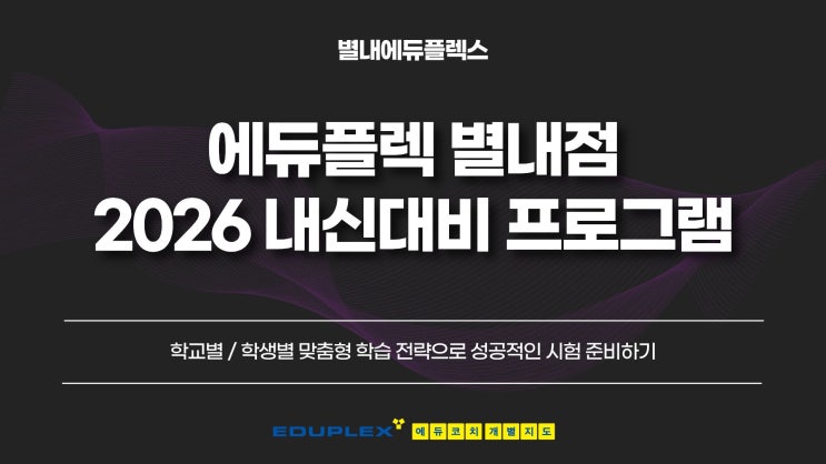 안녕하세요 :) 별내 에듀플렉스입니다. 현재 별내 에듀플렉스 학생들은 겨울방학을 알차게 보내고 새학기 대비를 준비 중에 있습니다 ^^ 개학 후, 내신 대비를 고민하는 학생/학부모님들을 위해 2026 별내 에듀플렉스 내신대비 프로그램을 소개 합니다! 작년 내신 대비 하면서 이런 걱정 있었던 학생들 있을까요? 이런 걱정 있던 학생들은 별내 에듀플렉스 프로그램을 꼭 봐주세요 !! 에듀플렉스 별내점은 6주 전부터 D-day까지 체계적인 내신 대비 프로세스를 운영합니다. 시험목표 설정 → 회독 관리 → 기출 분석 → 실전 연습 → 후속 관리까지 이어지는 단계별 시스템으로, 학생이 흔들리지 않고 끝까지 집중할 수 있도록 돕습니다. 우리 아....... <img src="https://blogthumb.pstatic.net/MjAyNjAyMTFfMTM1/MDAxNzcwODExMDk3NzEy.VoATBBvCeF58aLDXePXpit7Munbx2FLoN41nc-5jzgkg.EmBZVgF6l-BeezhxBfrlGdz3KcIqLUWLo8X177DfdrQg.JPEG/1.jpg?type=s3" />
