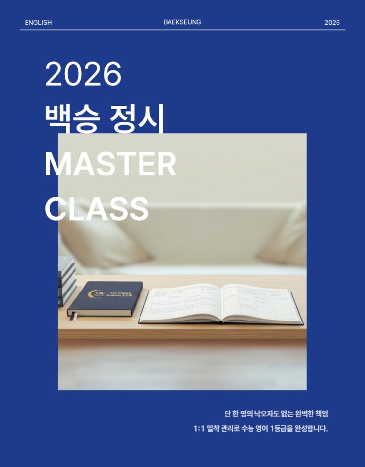 1년간 단 몇 명의 아이들만을 집중적으로 관리합니다. 작년 영어 불수능에서도 모든 백승 재원생들이 본인들의 목표 점수를 받을 수 있었던 핵심적인 이유입니다. 한 명의 낙오자도 없이 끝까지 책임집니다. 결국 영어 성적을 올리는 것은 3가지이기에, 이 3가지에만 온전히 집중합니다. 1st. 단어 암기 1) 학생별로 최적의 단어장을 선정하고 2) 효과적인 단어 암기법을 배우고 N회독으로 공부하며 3) 1년간 확실하게 관리합니다. 2nd. 해석 1) 아는 단어를 조합하여 감으로 글을 파악하는 것이 아니라 2) 백승해석공식을 통해 고3 수준의 문장을 정확하게 해석하는 방법을 배우고 3) 과외처럼 1:1로 지난 시간에 배운 내용들을 선생님과 함께 학....... <img src="https://blogthumb.pstatic.net/MjAyNjAyMTBfMTUy/MDAxNzcwNjkyOTY0ODU0.hjJyZ7iM4SSWTYxjJ4r5D1rF2O76oAW4riqMMgZFaRsg.m7R76gNqzYgu41rjQWUOw2p5ZHlhz3PEJM9bUJ707egg.JPEG/2026_%B9%E9%BD%C2_%C1%A4%BD%C3_%B8%B6%BD%BA%C5%CD_%C5%AC%B7%A1%BD%BA__1._1%B3%E2%B0%A3_%B4%DC_%B8%EE_%B8%ED%C0%C7_%BE%C6%C0%CC%B5%E9%B8%B8%C0%BB_%C1%FD%C1%DF%C0%FB%C0%B8%B7%CE_%B0%FC%B8%AE%C7%D5%B4%CF%B4%D9._%C7%D1_%B8%ED%C0%C7_%B3%AB%BF%C0%C0%DA%B5%B5_%BE%F8%C0%CC_%B3%A1%B1%EE%C1%F6_%C3%A5%C0%D3%C1%FD%B4%CF%B4%D9..jpg?type=s3" />