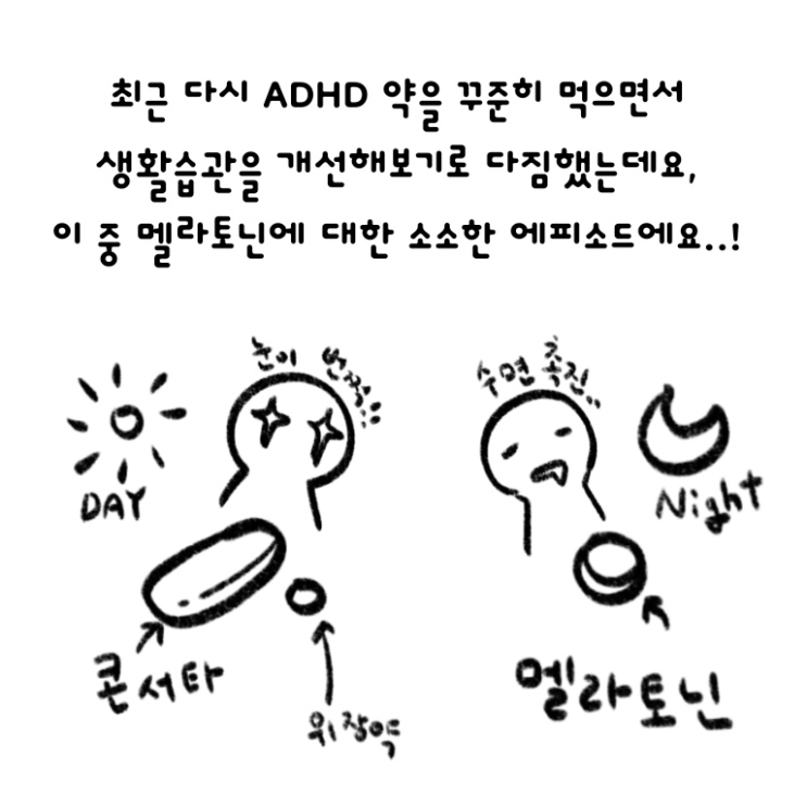 최근에 x에서 멜라토닌을 먹으면 악몽을 꿀 수 있어요! 라는 이야기를 본 적이 있는데요. 에이;; 그거 먹는다고 무슨 악몽을 꿔? 하고 생각하고 그냥 잊고있었는데... 어제 진짜 오랜만에 병원에 다녀와서 '그래! 이제부터라도 약을 잘 챙겨먹자!' 하며 다시 ADHD약을 복용하게 되었는데 그 중 하나가 멜라토닌이었던것이에요... 비겁한 멜라토닌의 악마녀석... 잠을 줄테니 악몽을 주겠다 이거냐..! 제가 평소에 되게 깜빡하는 경우가 많아서, 항상 즉석에서 대처방안을 마련하고 진정하는 경우가 종종 있는데 아니 이 꿈에선 진짜 겨우 대처방안 마련하면 또 사건을 터뜨리고... 그거에 대한 대처를 생각하면 또 뭔가 일이 터지는 끔....... <img src="https://blogthumb.pstatic.net/MjAyNTEyMDNfNDEg/MDAxNzY0NzczOTUwMjAz.8_FLnfU2N9Z92n11SIcvEs2rdSZc2L1WLvVTW6Zq_Hwg._ZmCXzdy7qh4Z1aH_2Iy42Yo1WY0fA4Lobgd6UeJtvAg.PNG/KakaoTalk_20251203_235756876.png?type=s3" />