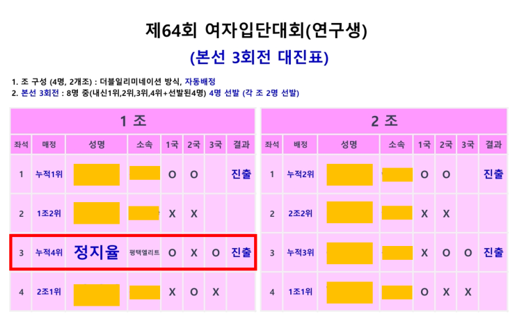 안녕하세요, 평택엘리트바둑전문학원입니다! 지난 11월에 진행된 제64회 여자입단대회(연구생)에서 우리 지율 친구가 본선 시드를 받아서 본선 3회전부터 출전했습니다! 여자연구생 입단대회를 준비하고 본선 4회전까지 올라가면서 우리 지율친구는 후회하지 않도록 승부사의 기질을 여한없이 발휘했습니다! 아쉬움이 많이 남았을거라고 생각되는데 그럼에도 불구하고 바로 15세이하 입단대회 및 여자입단대회 준비에 들어간 우리 지율친구!!! 너에게 배울 점이 정말 많구나... 올해 초에 열린 여자입단대회에서 우리 지율친구가 예선에서 시작해 8강까지 갔었는데요! 이번에는 8강에서 시작해 4강까지 가다니!!! 12월부터 내년 1월까지 진행되는....... <img src="https://blogthumb.pstatic.net/MjAyNTEyMDJfMTgx/MDAxNzY0NjU1NDMzNzU3.j8fyvCaM-Bt8aS17rP4dkhyYSj0o5KcacwIpCevTGRkg.VvA6zD9ZcLmCn2i-BAWpWbOlPXKBhO2TNvxKUcT5tGcg.PNG/%B1%D7%B8%B24.png?type=s3" />