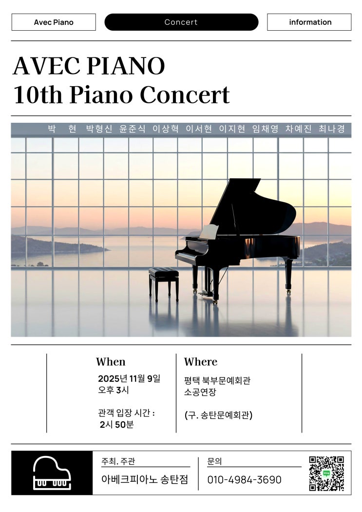 안녕하세요! 성인 전문 아베크피아노학원 송탄점입니다 드디어!! 올해 가장 반짝이는 순간✨ 제 10회 정기연주회 포스팅을 가져왔습니다. 함께 했던 감동의 기록을 시작해볼게요! 1. 연주회 개요 & 분위기 올해 제 10회 아베크 피아노 송탄점 정기연주회는 따뜻한 설렘과 함께 열렸습니다 학원을 대표하는 성인 연주자님들”이 한 자리에 모인 날이라 공연장은 시작 전부터 두근두근… 2. 리허설부터 진짜 프로! 연주 전 리허설에서도 대충 하는 사람? 단 한 명도 없었다는 사실…! 악보 한 장, 손가락 한 번 움직일 때마다 진심이 느껴지는 우리 수강생들… 카메라 안 들 수가 없었어요 ✨ “아… 나도 저....... <img src="https://blogthumb.pstatic.net/MjAyNTExMjBfODIg/MDAxNzYzNjI4NTExNDk1.CRFPuwpfoO3wJbSIdsUgjoj5FLotWxNvwBW18bfG0Bgg.DIQESxWwLhtxrDGmgeFptqGYYQryYoj1ISTCL9DcCqsg.JPEG/KakaoTalk_20251120_174727702.jpg?type=s3" />