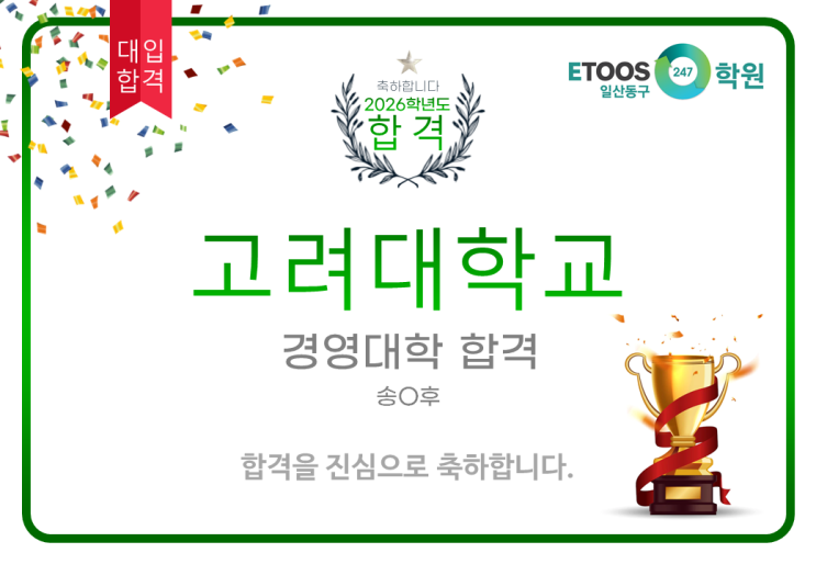 고려대학교 경영대학 합격을 진심으로 축하합니다