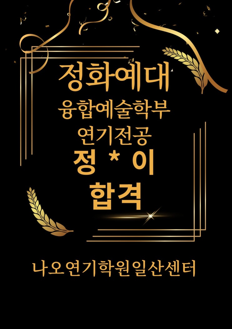 2026학년도 나오연기학원 일산센터 수시모집합격자 입시생 2명 모두 수시합격!!!!!! 2026학년도 수시합격 정화예술대학교 융합예술학부 연기전공 합격 정 * 이 ✨ 2026학년도 정화예대 연기전공 합격 소식 나오연기학원 일산센터가 4월에 오픈한 이후, 두 번째 입시생이 등록해 6개월간의 집중 수업으로 만들어낸 값진 결과입니다. 입시생 2명 모두 수시합격!!!!!! 매월 진행되는 월말테스트 전 지점 통합 모의고사도 분기별 강남에서 실시되고 원장님&현직교수님&외부입시전문선생님들을 모시고 학생들의 실력을 객관적으로 평가하고 부족한 부분을 회의와 분석을 통해 1:1집중케어하며 개인별 맞춤수업을 진행합니다. 연기....... <img src="https://blogthumb.pstatic.net/MjAyNTEyMjJfMTM3/MDAxNzY2Mzk3NTAyNzAw.pBFQjtoyi0d_HaQV_5typvfwqQBa2w0ENtzqh55FgSIg.Ap14riYOIOrKOCiVbZZ89nreU4jUgjCurC5yeWkKsmAg.JPEG/%B0%CB%C1%A4_%B1%DD%BB%F6_%C5%AC%B7%A1%BD%C4%C7%D1_%C0%BD%BE%C7_%BC%F6%BB%F3%C0%DA_%B9%DF%C7%A5_%C0%CE%BD%BA%C5%B8%B1%D7%B7%A5_%B0%D4%BD%C3%B9%B0_%28%C6%F7%BD%BA%C5%CD%28A3_%BC%BC%B7%CE%C7%FC%29%29_%284%29.jpg?type=s3" />