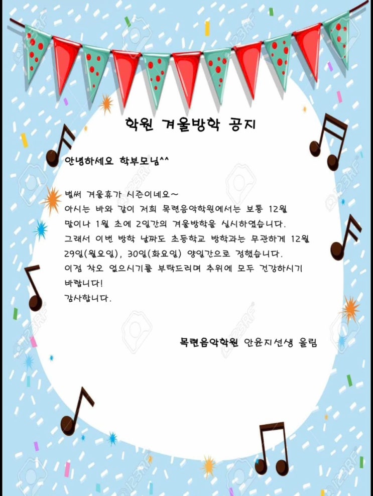 대화동 피아노: 목련음악학원 겨울방학 공지※