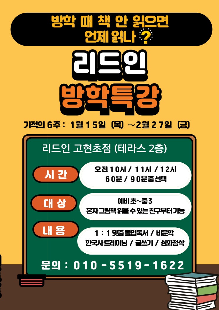방학 때 책 안 읽으면, 정말 언제 읽을까요? 오산리드인고현초점 방학특강 안내
