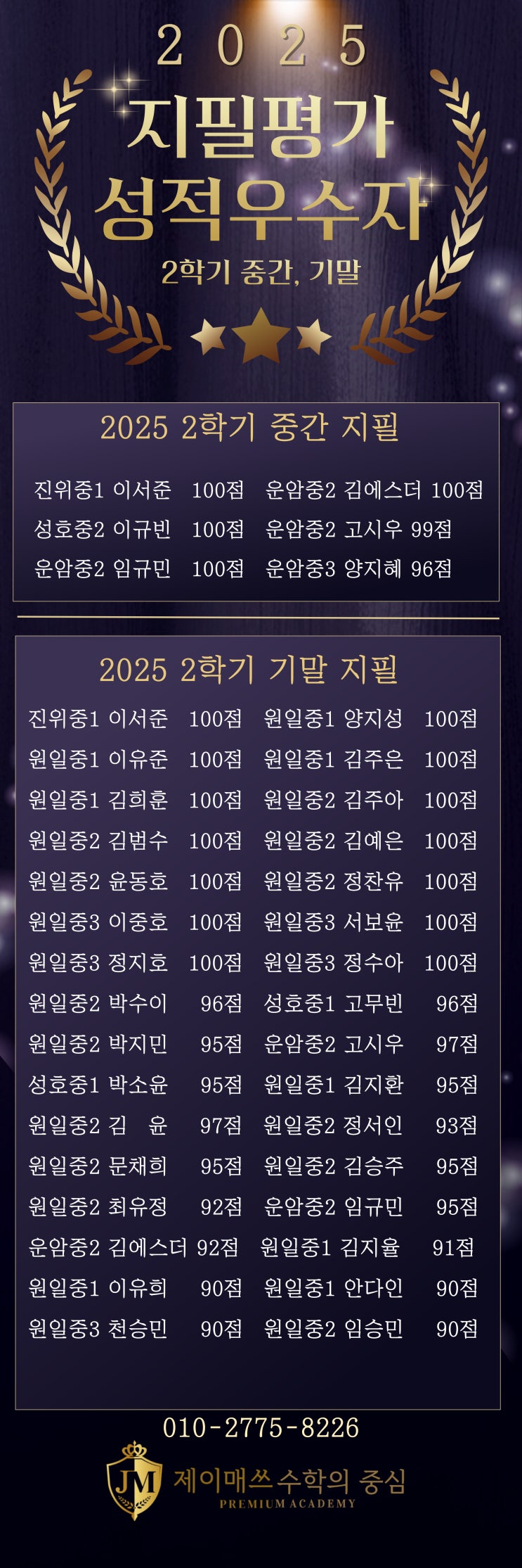 2025 지필평가 중간+기말 우수자 배너