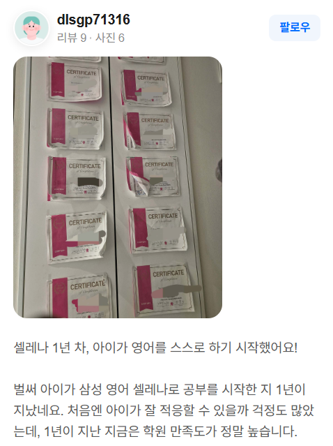 [분당 판교동 원마을6단지 삼성영어셀레나 판교교실]정성스런 리뷰 정말 감사합니다!!