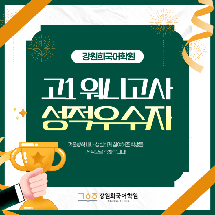 [목동 국어학원] 강원희국어학원 고1 워니고사 성적우수자 시상 안내