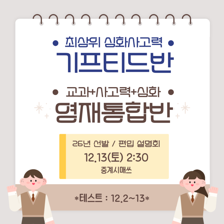 중계시매쓰 26년 기프티드반 / 영재통합반 선발, 편입 안내 (+설명회)