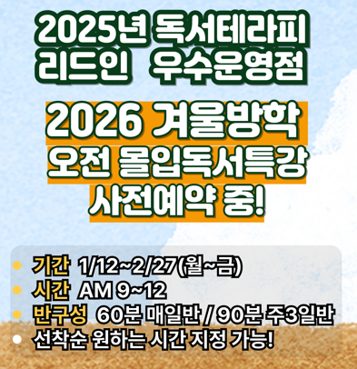 [공지] 리드인 겨울방학특강! 몰입독서특강 사전예약 중!
