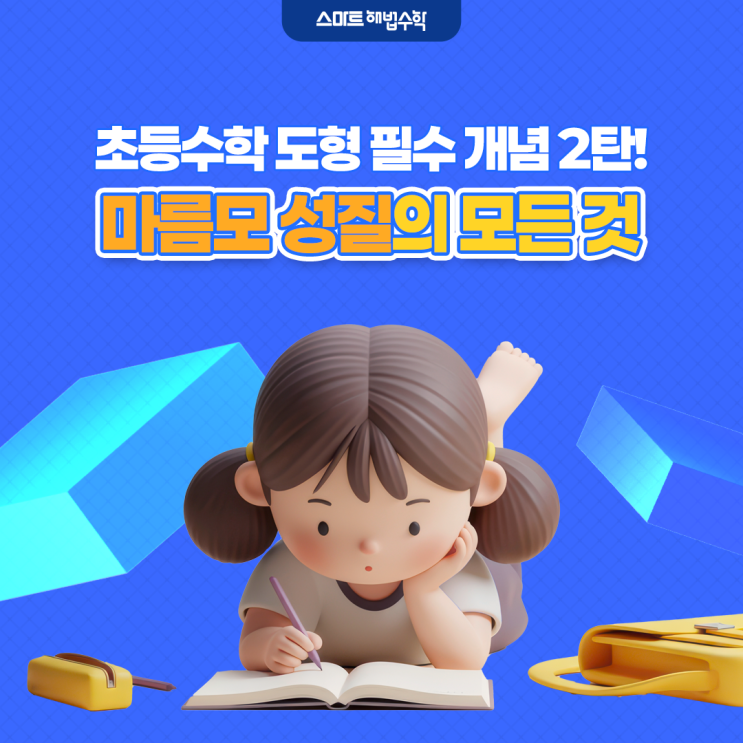 안녕하세요. 스마트해법입니다. 지난 시간에 평행사변형을 다뤘던 것처럼, 사각형 단원은 개념 하나하나가 다음 학년의 도형 학습으로 자연스럽게 이어지는 중요한 기반이 됩니다. 특히 초등 4학년 2학기에는 처음으로 ‘마름모’라는 도형을 본격적으로 배우게 되는데요, 이때 정확한 개념 잡기가 이후 도형·측정 단원 이해에 큰 힘이 되죠. 스마트해법에서는 아이들이 어려워하는 도형 개념을 쉽고 정확하게, 그리고 흐름이 보이도록 정리해드리고 있어요. 오늘은 필수 개념 2탄! 교과서에서 배우는 마름모 성질에 대해 차근차근 살펴보려 합니다. 그럼 바로 시작해볼게요! 다양한 입체 도형으로 연결되는 사각형 오늘은 초등 4학년 2학기 4. 사....... <img src="https://blogthumb.pstatic.net/MjAyNTEyMDRfMTkg/MDAxNzY0ODE3Nzc3Mjkx.VH01TrkAcw5-fH-NIftnbZPfcPuQWGv67al7QcwrjGcg.x1vXCuiY_z84lPjTOX296Vblb5oooC8XRj59UlNNOJ0g.PNG/%B8%B6%B8%A7%B8%F0_%BC%BA%C1%FA01.png?type=s3" />