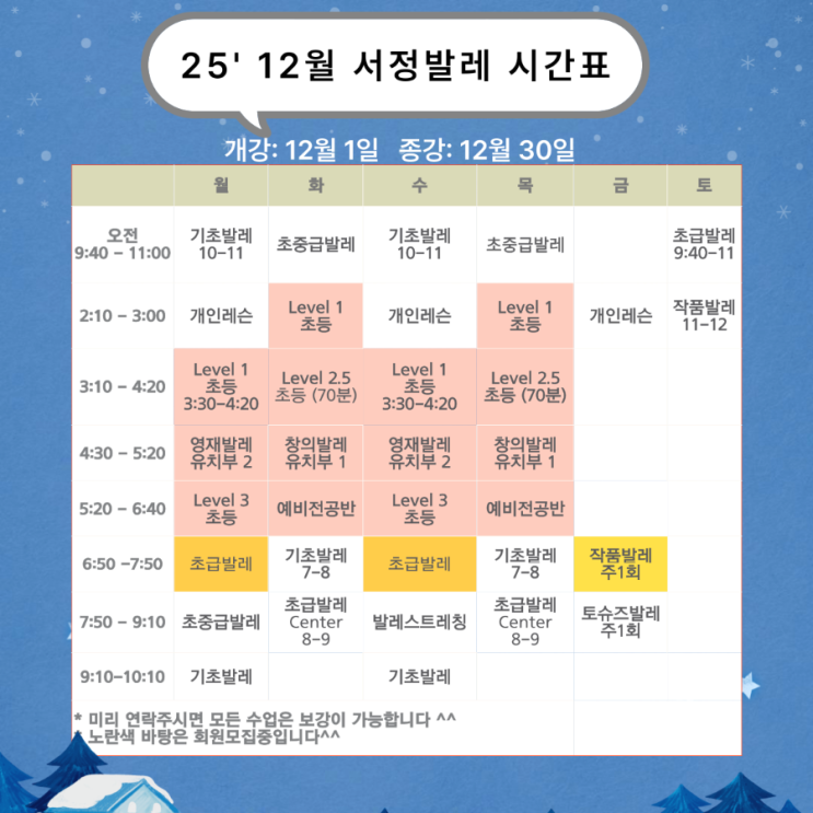 송파발레)) 서정발레 12월 스케줄입니다 ^^
