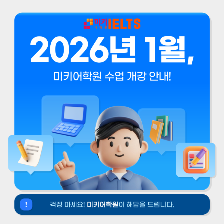 점수가 오르지 않는 것은, 방법이 틀린것이다! 안녕하세요! 30년 전통 IELTS 전문학원 미키어학원입니다. 수능이 끝났든, 유학을 준비하든, 직장에서 승진을 바라든, 결국 영어점수가 여러분의 길을 막아 세우는 순간이 반드시 찾아옵니다. 처음엔 누구나 이렇게 생각합니다. “유튜브로 하면 되지 않을까?” “인강 들으면서 꾸준히 해볼게요!” “독학해도 다들 점수 올리던데…” 하지만 현실은 매우 냉정합니다. IELTS는 ‘혼자 하면 절대 안 오르는 시험’입니다. 단순히 단어만 많이 외운다고, 문제를 많이 푼다고 해결되지 않습니다. 라이팅은 매번 5.5에서 멈추고, 스피킹은 6.0이 벽처럼 느껴지고, 리딩은 항상 시간이 부족하고, 리스닝....... <img src="https://blogthumb.pstatic.net/MjAyNTEyMDVfMjU0/MDAxNzY0OTAyODQxNDk3._vElVNl1i_5z8mYSWDbh6y8s-wUO5MMv_kFjSJXzWfAg.BXWkG9IW7CLA-ztu4a4XqGlOsrWXfOi_pWuRF1EIWgYg.PNG/20251205_001.png?type=s3" />