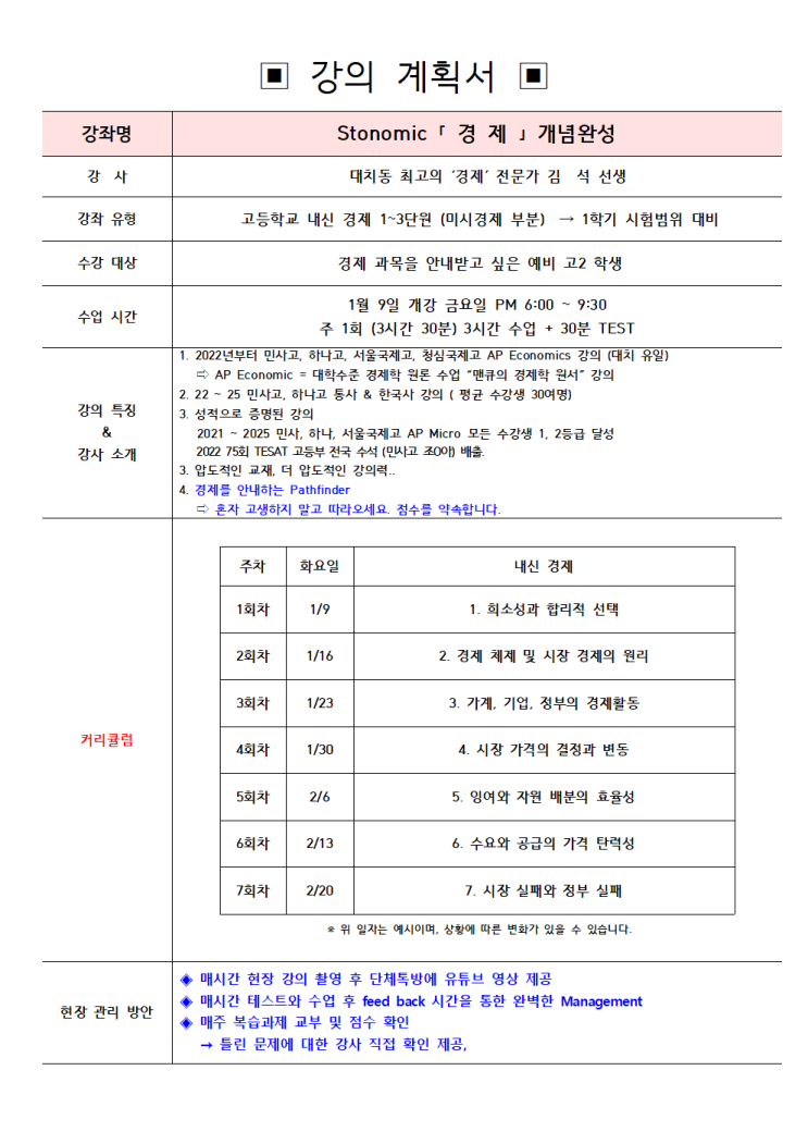 [2026] 예비고2 겨울방학 강의계획서 [사탐]