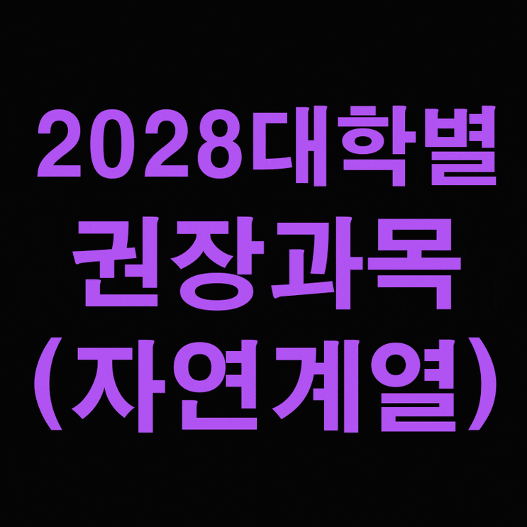 자연계열 모집단위의 구너장과목은 서울대, 고려대 등 여러 대학을 통해 발표된 바 있습니다. 인문계열과 비교해 이미 전공별 이수권장과목이 어느정도 자리잡혀 있는데요. 다만, 최근 한국대학교육협의회에서 각 권역의 대표 대학들의 모집단위별 핵심과목과 권장과목을 공개함에 따라, 보다 많은 대학의 최신 발표를 반영한 계열별 권장과목 특징을 다시 살펴볼 필요가 있습니다. 자연계열 비슷한 특성의 학과들로 분류하여 권장과목 확인 필요 자연계열은 같은 단과대라 할지라도 개별 모집단위마다 중점 과목이 다른 경우가 있습니다. 따라서 단과대보다는 비슷한 특성을 가진 모집단위를 기준으로 권장과목이 어느정도 묶이는 특징이 있습니....... <img src="https://blogthumb.pstatic.net/MjAyNjAzMDlfMTI2/MDAxNzczMDQ3OTE3Mjgx.RQlizuwHik3u8s8RHzbxBLgqaHDjFKWbBWpqtAx9bv0g.dQkqzw077PIyq4XUTxGzDUpr4SutcytQ626bg11MmNQg.GIF/2028-%B4%EB%C7%D0%BA%B0-%B1%C7%C0%E5%B0%FA%B8%F1.gif?type=s3" />